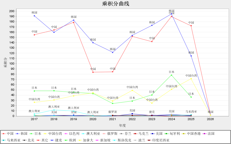 TOP国家/地区乘积分变化曲线